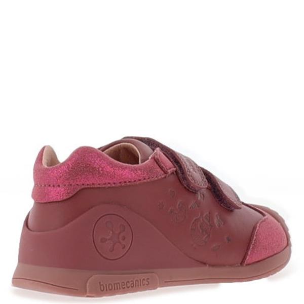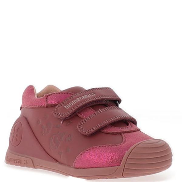 A charming pink kids’ trainer from Biomecanics, featuring an adorable bird motif on the side. Designed with a double velcro strap and fold-down tongue for easy wear, it includes a removable insole with a toe guide to monitor foot growth. Reinforced heel and toe bumpers add protection for active little feet.