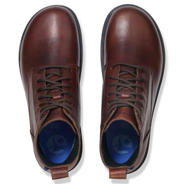 The BIRKENSTOCK Highwood Waterproof is a classic mid-height lace-up boot that combines authentic style with functional performance. Designed with the anatomically shaped Deep Blue Footbed, it offers natural comfort and support even on long, active days. The grained natural leather upper and integrated membrane provide reliable waterproof protection, while the rubber outsole ensures exceptional grip and durability.
