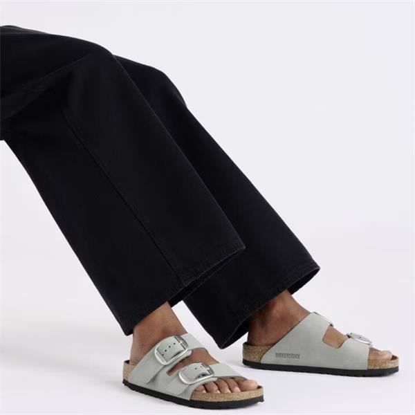 A timeless favourite from Birkenstock, the Arizona sandal in soft sage nubuck leather features the iconic two-strap buckle design and a cork-latex footbed for ergonomic support. The natural leather insole ensures breathability, while the lightweight EVA outsole offers everyday comfort. Perfect for casual, stylish wear.