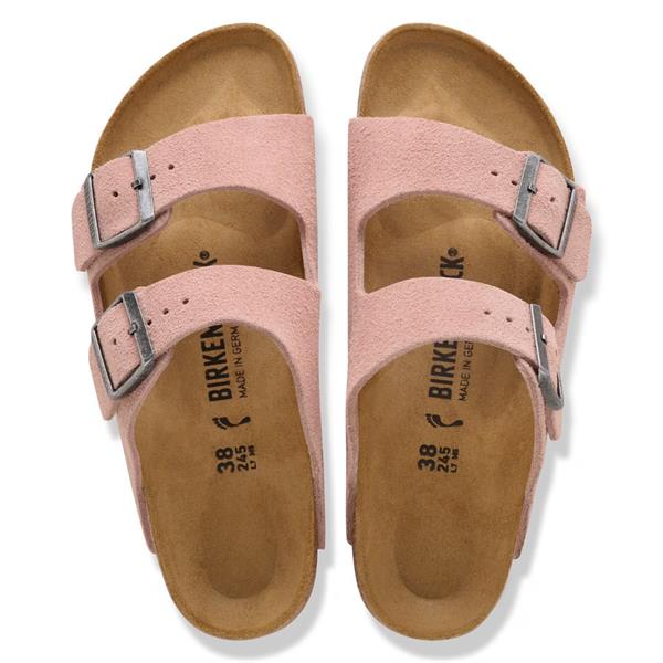 Introducing the BIRKENSTOCK Arizona sandal, a timeless two-strap icon celebrated for its signature comfort and effortless style. Crafted with a soft suede upper and an anatomically shaped cork-latex footbed, it delivers natural support and everyday wearability. Subtle color-coordinated details and matte buckles complete the refined look.