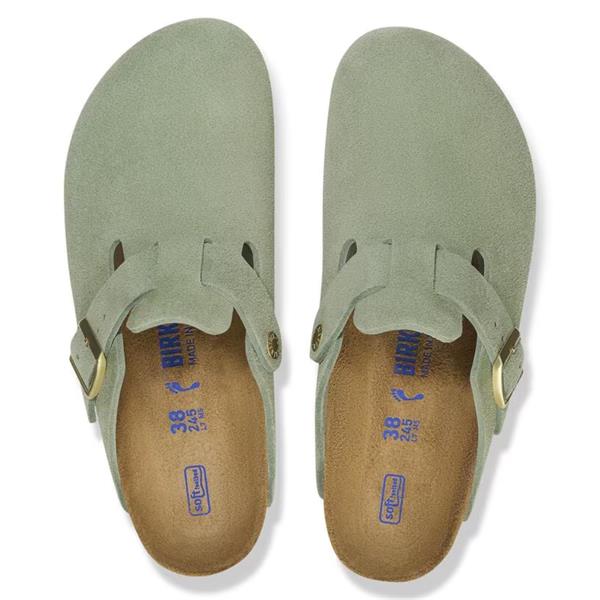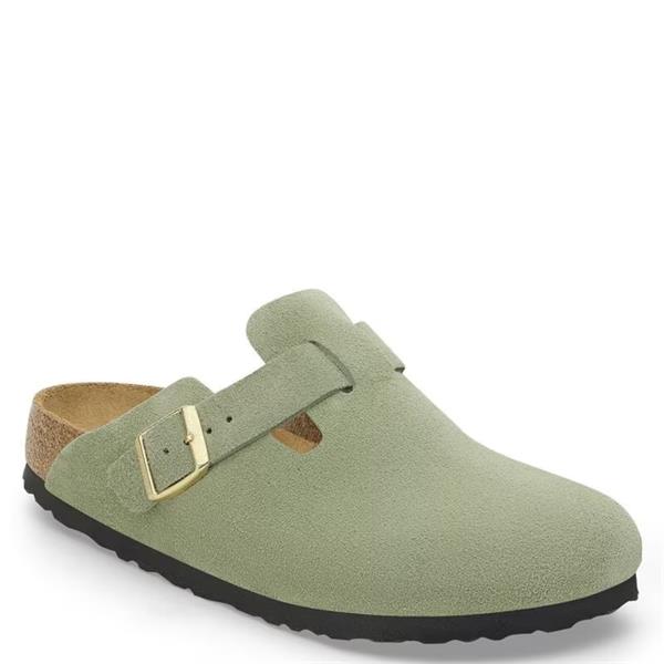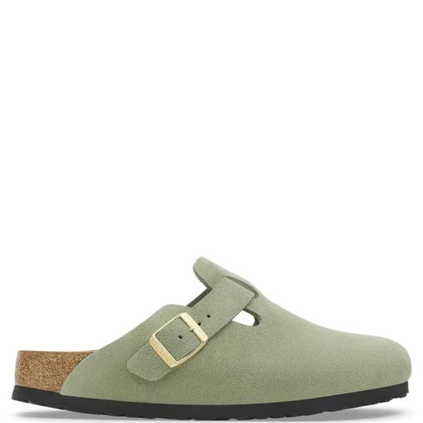 The Birkenstock Women's Boston BS Sandal in Green is a classic clog sandal that combines style with legendary comfort. Crafted from premium suede in an earthy green shade, this sandal includes an adjustable strap for a customised fit. The anatomically shaped cork footbed provides excellent arch support and conforms to the natural shape of the foot over time. Featuring a lightweight EVA outsole, this sandal is both flexible and shock-absorbing, suitable for both indoor and outdoor wear.
