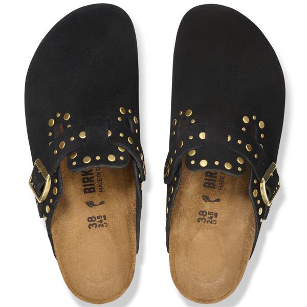 The BIRKENSTOCK Boston is a timeless clog with legendary status, loved for its sophisticated, adjustable design and superior craftsmanship. This special edition features decorative rivets securely embedded into the suede upper for a refined, seamless finish. Crafted from especially soft suede, it hugs the foot like a second skin and provides lasting comfort through the anatomically shaped cork-latex footbed.