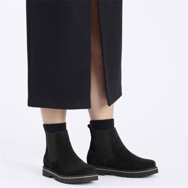 A premium ankle boot from Birkenstock, crafted in soft black suede with a focus on comfort and timeless style. Designed for everyday wear, it features the brand’s signature anatomical footbed for exceptional support.