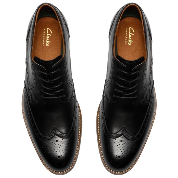 A refined and timeless dress shoe designed for formal and business occasions. Crafted in premium black leather with classic brogue detailing, this Clarks style combines elegant design with all-day comfort.