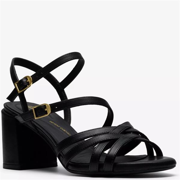 A sophisticated strappy sandal designed for elegant occasions and evening wear. Crafted in premium black leather with a comfortable block heel, it delivers both style and dependable support.