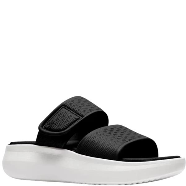A trendy athleisure sandal designed to combine everyday comfort with modern style. Finished in classic black, this Clarks style features a lightweight platform and cushioned footbed, making it perfect for casual summer outfits.