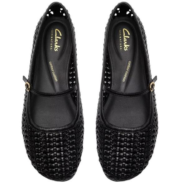 A modern and breathable ballerina shoe designed for effortless everyday wear. Finished in black with a woven upper, this Clarks style combines lightweight comfort with a secure fit and cushioned support.