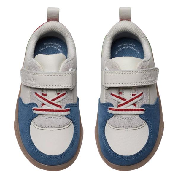 The Oslo Vibe toddler trainer in White Blue combines heritage style with smart comfort features to support little explorers. With a breathable leather upper, cushioned foam footbed, and easy rip tape strap, it’s designed for confident movement and healthy foot development.