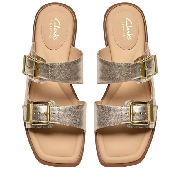 A stylish and comfortable sandal designed for effortless summer wear. Crafted in premium gold leather, this Clarks style combines adjustable straps with cushioned support for all-day comfort.