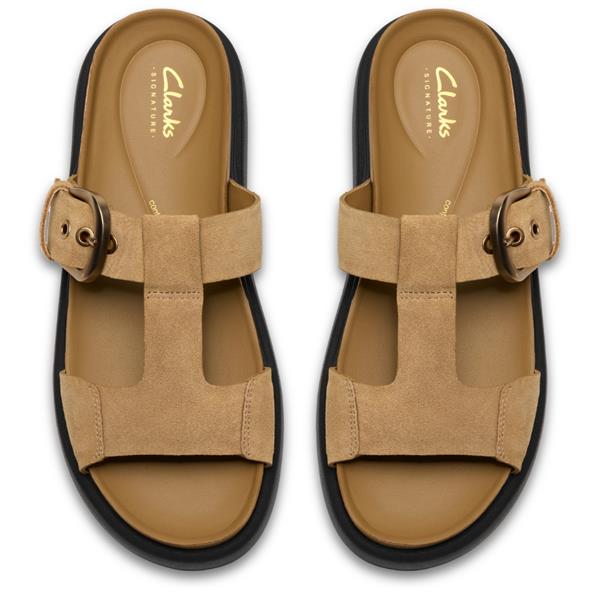 A stylish and supportive slide sandal designed for effortless summer comfort. Crafted in premium sand suede, this Clarks style combines adjustable buckle detailing with cushioned support for all-day wear.