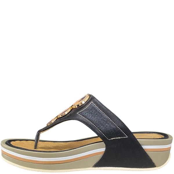 Step into stylish comfort with the Wedge Toe Post Sandal from Comfort. Perfect for warm weather, this black sandal features a classic toe-post design combined with a wedge heel for added height and comfort. The cushioned footbed and supportive structure ensure that these sandals keep you comfortable from day to night, whether you're running errands or enjoying a casual outing.
