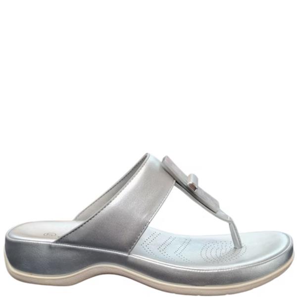 Add a touch of shimmer to your summer wardrobe with the Comfort Wedge Toe Post Sandal in silver. Designed for everyday ease, this sandal combines a sleek toe post silhouette with a lightweight wedge heel (approx 4 cm), offering the perfect balance between style and comfort. Ideal for holidays, casual outings, or a relaxed day in the sun.