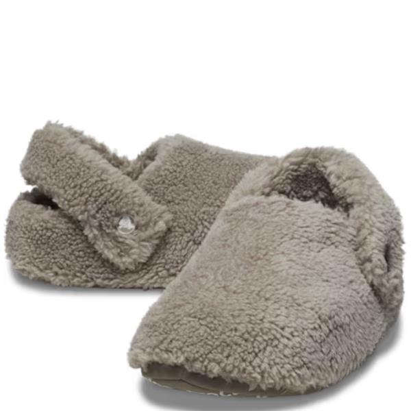 Crocs Classic Cozzzy Slipper in Mushroom, designed for pure indoor comfort. This cozy reinterpretation of the iconic Classic Clog features 360° faux-shearling lining for warmth, a soft cushioned footbed that gently hugs the feet, and a textured outsole for extra grip. The cozy backstrap provides a secure fit, making it perfect for lounging days at home.