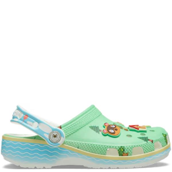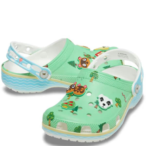 The Crocs Animal Crossing Classic Clog brings a little island magic to everyday play. Featuring a peaceful forest scene across the upper and a serene water-inspired sole, it comes topped with fixed Animal Crossing Jibbitz™ charms — from Isabelle to fun in-game elements — adding instant character. Lightweight, breathable and water-friendly, it’s easy to clean, quick to dry, and finished with a pivoting heel strap for a more secure fit plus iconic Crocs Comfort™ for all-day wear.
