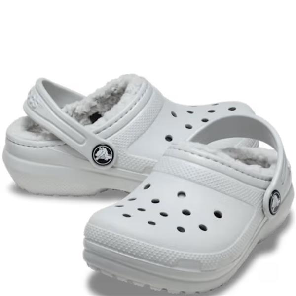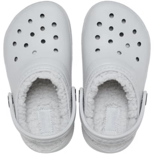 Crocs Kids Classic Lined Clog in Atmosphere offers the iconic Crocs comfort with a soft, fuzzy liner to keep feet warm all season. Lightweight and easy to wear, this versatile clog features pivoting heel straps for a secure fit and ventilation ports for breathability. Perfect indoors or out, it delivers Dual Crocs Comfort™ cushioning that’s soft, supportive, and easy to love.