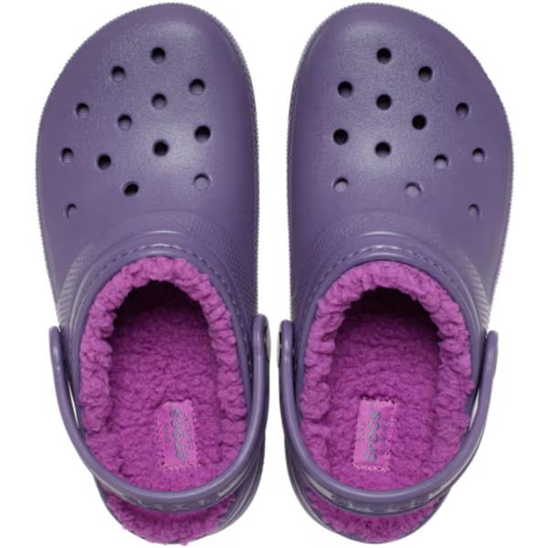 Crocs Kids Classic Lined Clog in Night Shade offers the iconic Crocs comfort with a soft, fuzzy liner to keep feet warm all season. Lightweight and easy to wear, this versatile clog features pivoting heel straps for a secure fit and ventilation ports for breathability. Perfect indoors or out, it delivers Dual Crocs Comfort™ cushioning that’s soft, supportive, and easy to love.