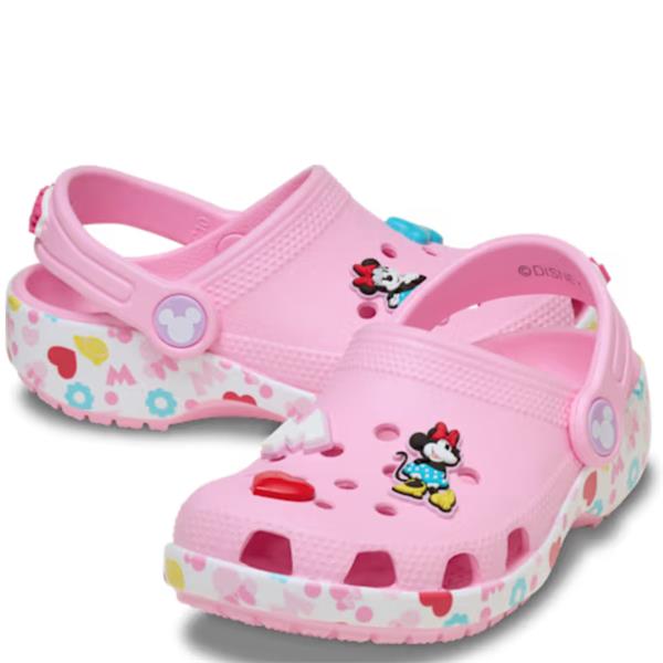 Every day feels more fun with the Crocs Minnie Mouse & Friends Classic Clog. Designed in a playful multi-colour look, it features all-over Minnie-inspired graphics on the sole, a “Minnie” detail on the heel strap, and exclusive Minnie Jibbitz™ charms for extra character. Lightweight, water-friendly and quick to dry, it’s easy to clean and built for busy little feet. The pivoting heel strap adds stability, while the iconic Crocs Comfort™ keeps them comfy all day.