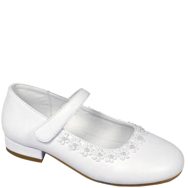 A charming and elegant choice for special occasions, the Dubarry Girls Strap Communion Shoe in White features a classic design with delicate floral detailing. The single Velcro strap ensures a secure and adjustable fit, making it perfect for comfort and style on her special day.