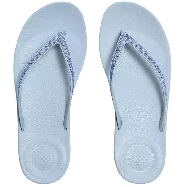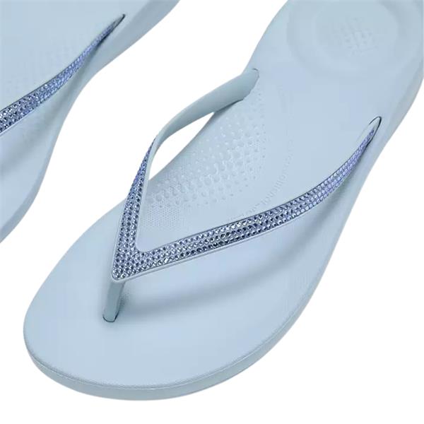 A stylish and lightweight flip-flop sandal designed for effortless summer comfort. Finished in cloudy blue with sparkling embellishments, it combines playful style with ergonomic cushioning for all-day wear.