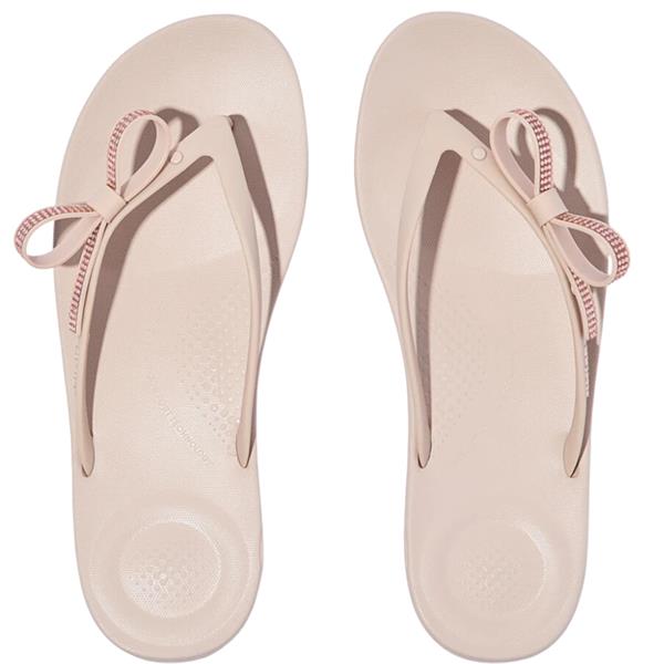 Add a touch of sparkle to your summer wardrobe with this FitFlop sandal in elegant Nude Rose. Finished with a rubberised bow and shimmering sequin detail, it brings a dressier feel to an easy everyday flip-flop silhouette.