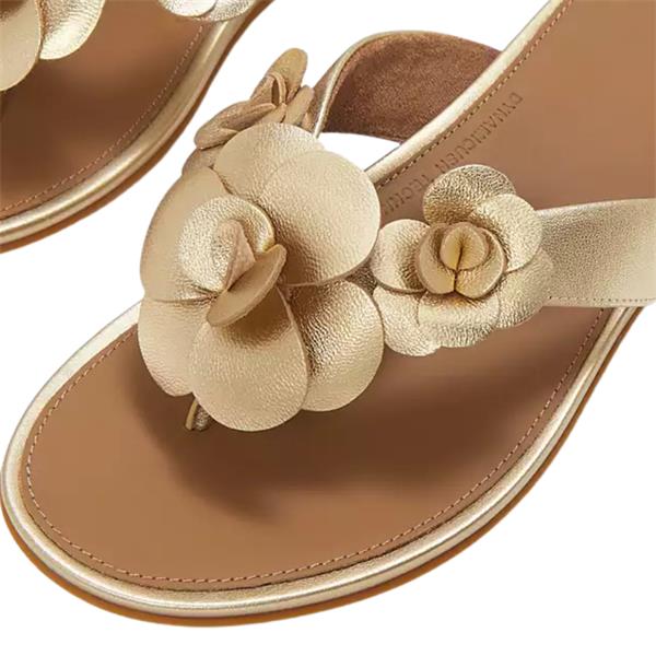 Add a feminine finishing touch to your summer wardrobe with this FitFlop sandal in elegant Platino. Crafted in metallic leather with floral detailing across the front, it blends refined style with the all-day comfort the brand is known for.
