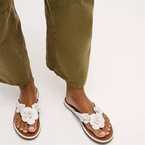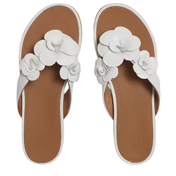 Add a feminine finishing touch to your summer wardrobe with this FitFlop sandal in elegant White. Crafted in metallic leather with floral detailing across the front, it blends refined style with the all-day comfort the brand is known for.