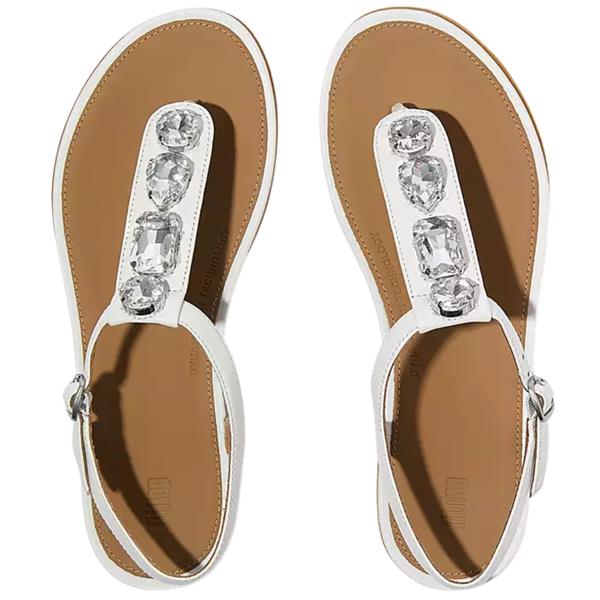 Bring understated glamour to any outfit with this FitFlop sandal in striking White. The slim T-bar silhouette, metallic leather finish and oversized gemstone embellishments create an elegant look that works beautifully for both daytime occasions and evening wear.