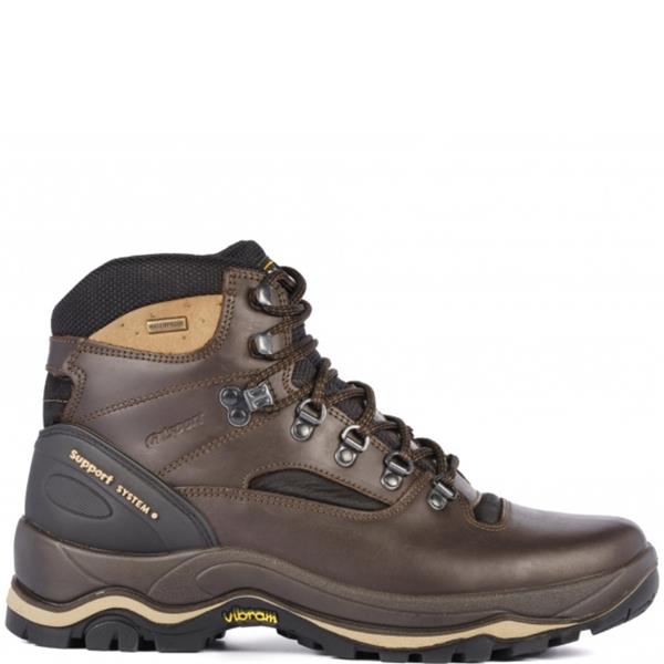 The Grisport Quatro boot is built for demanding outdoor conditions, combining premium Italian Dakar leather with advanced waterproof protection. Its breathable waterproof membrane keeps feet dry without overheating, while the patented Support System® and torsion-proof R-System arch support deliver excellent stability on uneven terrain. A triple-density midsole with micro air-bubbles absorbs impact for long-walk comfort, and the Vibram® Terrain outsole provides strong grip with deep lugs. Finished with self-locking metal hooks, a 2-zone lacing system, padded flex-point comfort, and a bellows tongue to block water and debris.