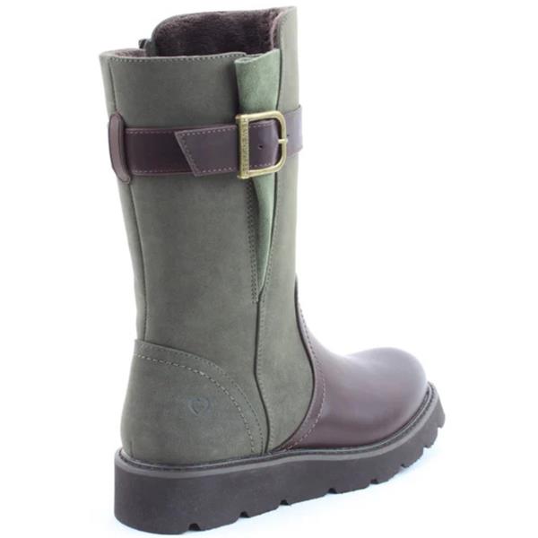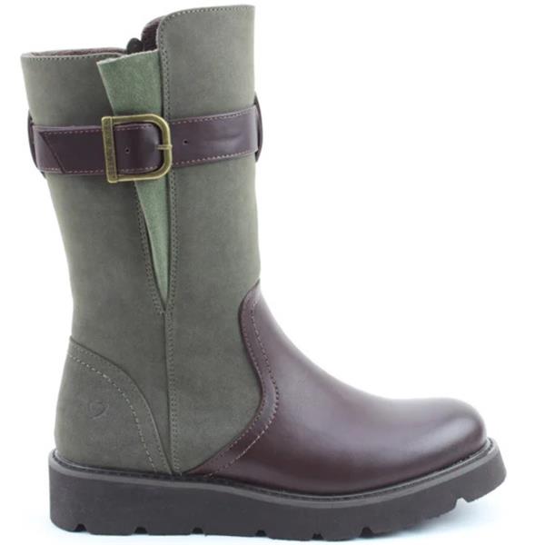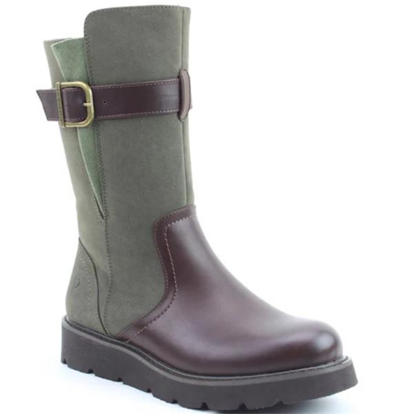 Heavenly Feet women’s KIN COMBO zip boot in chocolate khaki, part of the Litesoles collection, offering a perfect blend of comfort, colour, and lightweight design. Crafted from soft-touch faux suede with a stylish twin-tone finish, this vegan-friendly mid-calf boot brings biker-inspired charm to your everyday wardrobe. Featuring an inside zip for easy wear, a sleek buckle strap for a modern touch, and a removable memory-foam insole for superior comfort. The flexible EVA sole provides a feather-light feel for all-day walking ease.