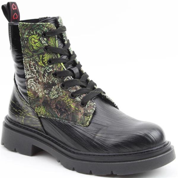 Heavenly Feet women’s EMMERSON zip lace ankle boot in black forest, crafted from premium vegan materials for sustainable comfort and style. Designed with a full side zip and lace fastening for an adjustable fit, it features a removable memory-foam insole for superior cushioning and a lightweight TPR sole that offers flexibility and stability. The perfect choice for a modern, fashion-forward look that doesn’t compromise on comfort.