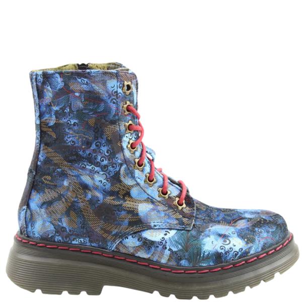 A statement ankle boot with a jungle-inspired blue velour finish, crafted with an 8-eyelet lace-up design and side zip for easy wear. Featuring plush textile linings and a removable Memory Foam insole, it delivers comfort with every step. Finished with a supportive 3 cm heel, this vegan-friendly style combines edgy fashion with everyday practicality.
