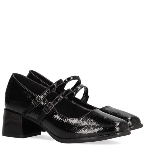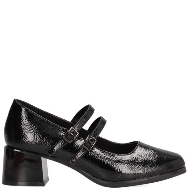 Hispaflex Hispaflex Womens Strap Medium Heel Shoe - Black Patent