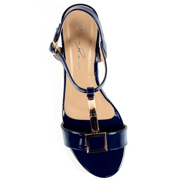 The Lunar low heel sandal combines classic elegance with everyday comfort. Designed with a glossy patent finish and chic gold T-bar detail, it’s perfect for special occasions or polished daytime wear.
