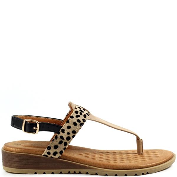 Make a statement in the Gina, a stunning toe-post sandal that’s sure to turn heads this summer. With soft straps in black, beige, and leopard print, this low wedge design blends bold style with everyday comfort. The cushioned insole and adjustable slingback strap ensure a secure, supportive fit—perfect for warm-weather outings. Step into summer in effortless style with the Gina sandal.