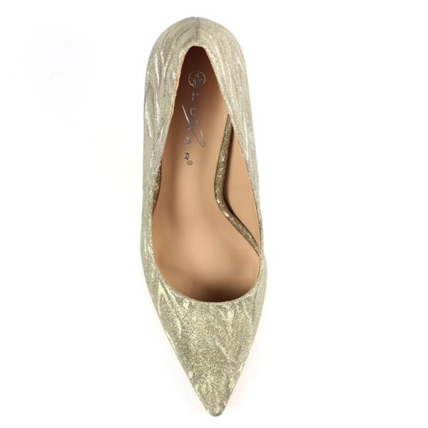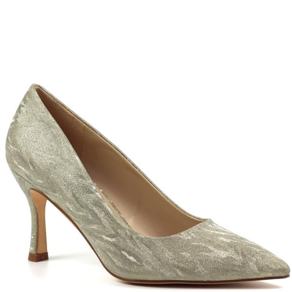 The Lunar Jada court shoe brings refined elegance to any occasion with its eye-catching silver swirl design. Featuring a sleek pointed toe and cushioned insole, it offers both style and comfort for special events.