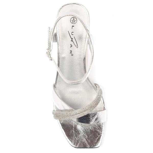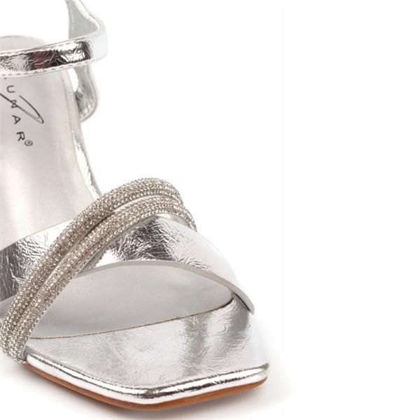 Add a glamorous finish to your occasion wardrobe with this Lunar mid heel sandal in shimmering Silver. Featuring metallic straps, sparkling rhinestone details and a comfortable block heel, it is perfect for weddings, parties and summer evenings.