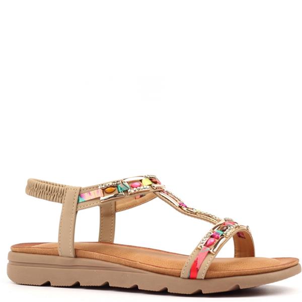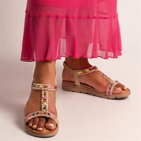 A fun and stylish summer sandal designed to bring colour and comfort to warm-weather outfits. Featuring vibrant bead and jewel embellishments, this eye-catching style adds a playful touch to everyday looks.