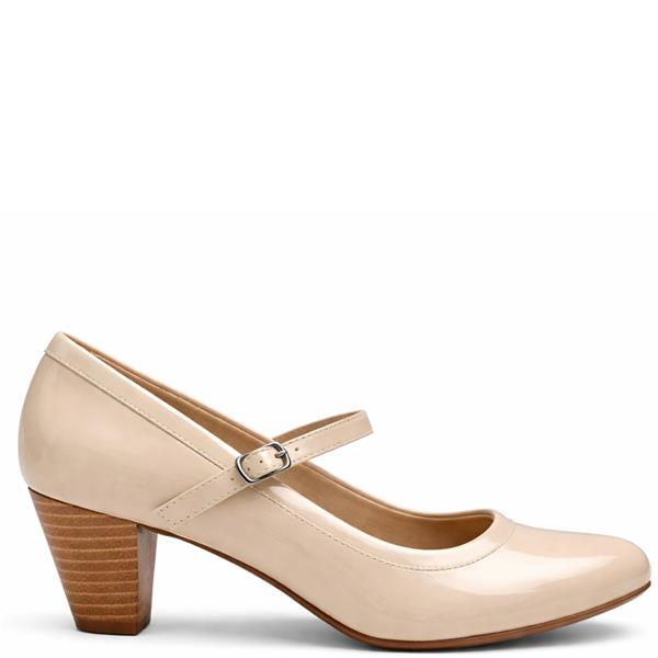 Nine To Five Lds Strap Court Shoe - Beige Patent