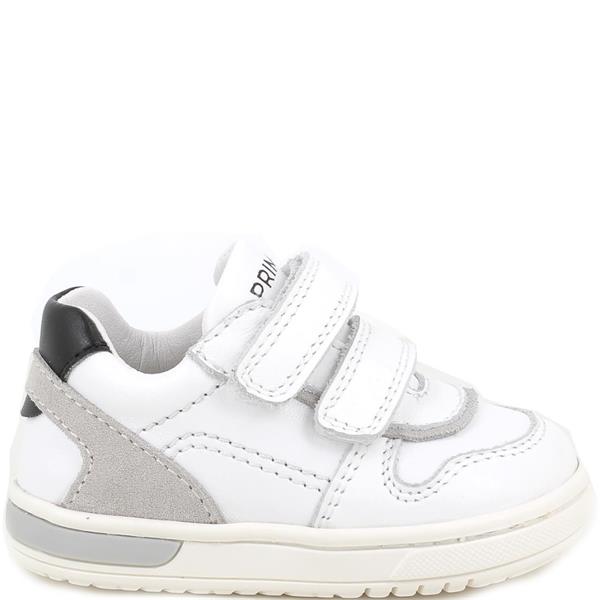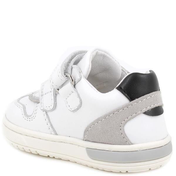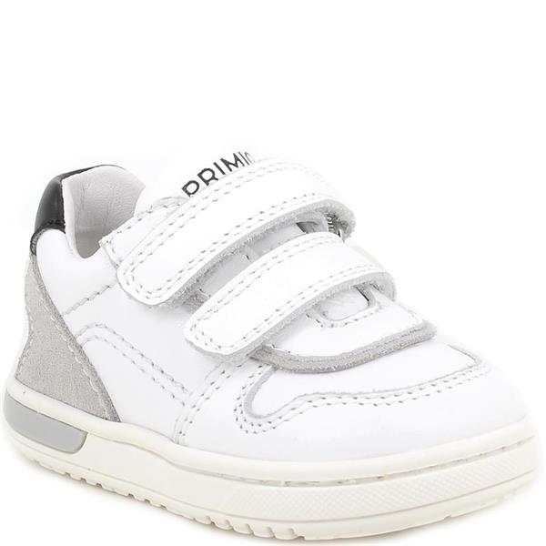 Primigi boys’ 8906111 twin-strap trainer in white synthetic leather and leather combination, designed for little ones taking their first steps. Featuring double Velcro fastening for a secure, adjustable fit and easy on/off, this shoe provides a breathable microline lining and a soft leather insole for lasting comfort. The lightweight, flexible sole supports natural foot movement throughout the day.