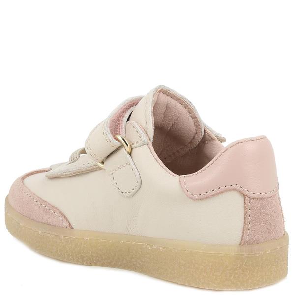 A practical first-steps trainer from Primigi, crafted in beige leather and suede with a microline lining for breathability. Designed with velcro and elastic lace closure for easy wear, it includes a removable leather insole and provides support for natural movement.