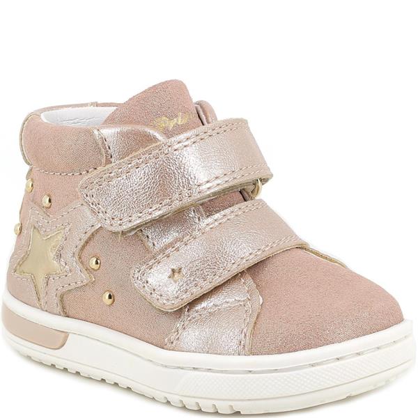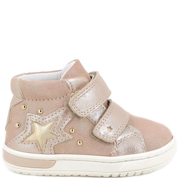 Primigi girls’ 8906200 twin-strap ankle boot in soft rosa laminated suede and synthetic leather, specially designed for little ones taking their first steps. The double Velcro fastening ensures easy on/off and a secure fit, while the breathable microline lining and soft leather insole provide lasting comfort. The lightweight, flexible sole supports natural foot movement, making it ideal for everyday wear.