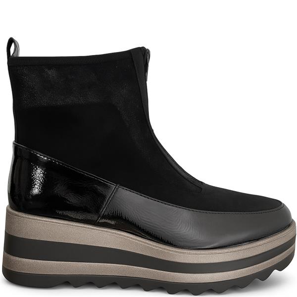 Redz women’s ankle boot in black synthetic material, designed with a wedge heel and side zip fastening for easy wear. Set on a 5 cm heel, this versatile style blends everyday comfort with modern appeal.