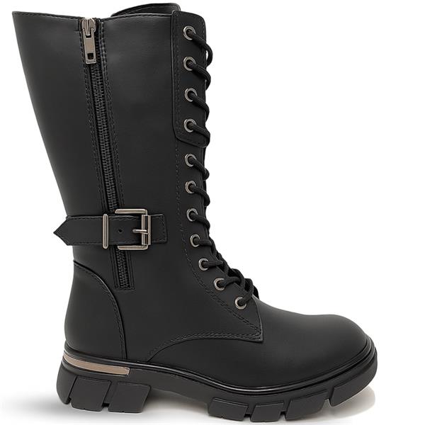The Redz 3/4 zip lace biker boot combines edgy style with everyday functionality. Featuring lace-up and buckle strap details, it delivers a bold look inspired by classic moto design. The practical inner zip allows easy on-and-off wear, while the sturdy sole ensures comfort and durability for daily use.