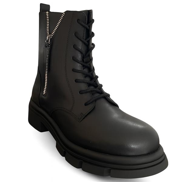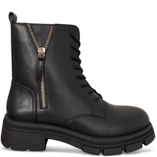 Redz women’s ankle boot in black synthetic material, designed with lace-up front and side zip fastening for a secure and practical fit. Set on a 3 cm heel, this everyday style combines comfort with modern appeal.