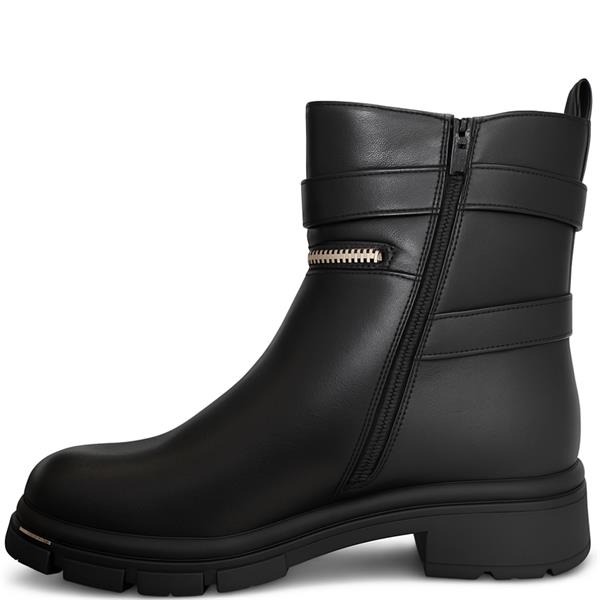 Redz women’s ankle boot in black synthetic material, designed with lace-up front and side zip fastening for a secure and easy fit. Set on a 3 cm heel, this versatile style blends comfort with everyday wearability.