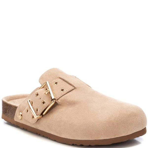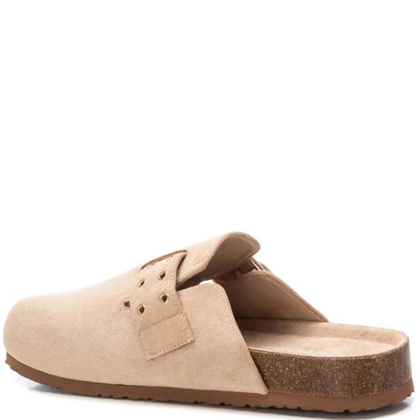 Step into effortless style with the Refresh Women's Flat Strap Clog Sandal in Beige Suede. Designed for all-day comfort, this backless clog features a soft faux-suede upper, an adjustable gold-tone buckle strap, and a contoured footbed for maximum support.
