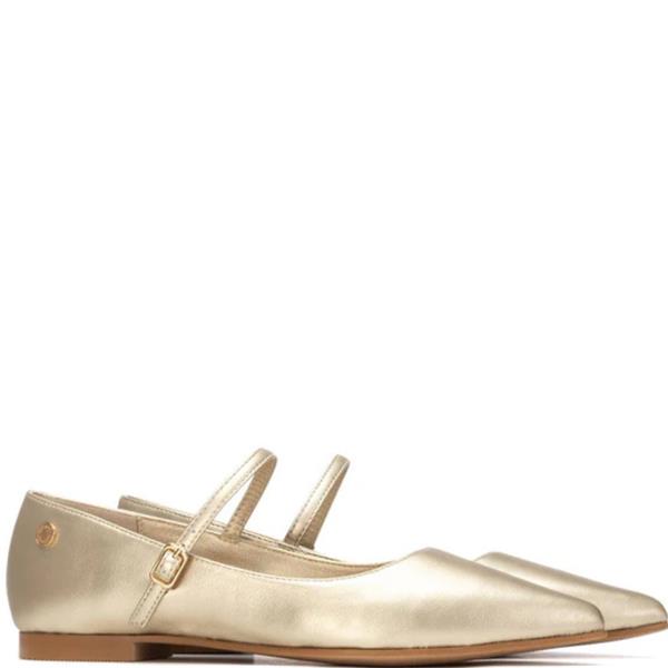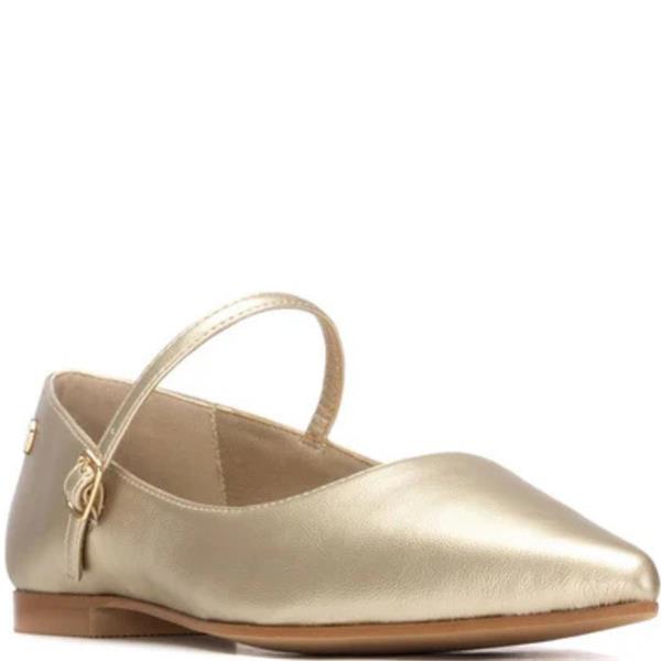 A sleek and elegant flat designed for versatile everyday wear. Finished in a gold tone, this Refresh Mary Jane style combines a pointed silhouette with a delicate strap for a refined and modern look.