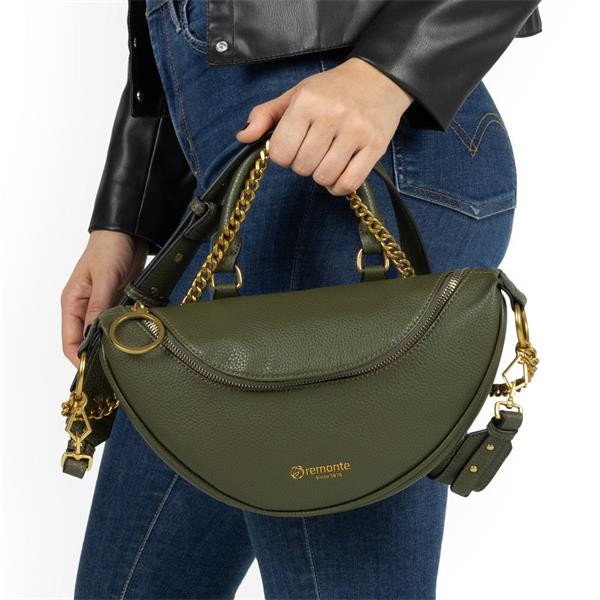 From Remonte’s Autumn/Winter 2024 collection, this sleek green crossbody bag blends satchel-inspired styling with practical details. A secure interior zip pocket keeps essentials in place, while the unique handle design allows for handheld use. The detachable shoulder strap offers comfortable cross-body wear, making it a refined yet functional choice for everyday outings.