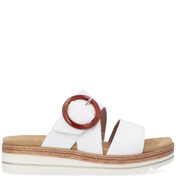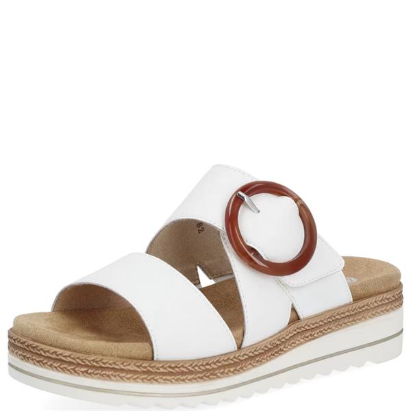 Designed for relaxed summer days, this Remonte wedge sandal in white leather offers a secure fit and supportive feel. Featuring a wide H fit and a soft textile lining, it provides extra room and breathability. The 4 cm wedge sole adds subtle elevation, while the removable insole enhances comfort with every step.