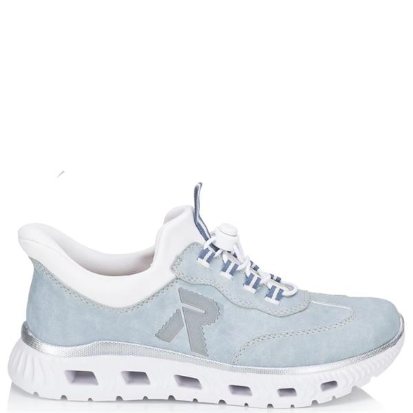 The Rieker Women's Evolution Cord Trainer in Blue is a stylish and comfortable choice for casual wear. This trainer features a lace-up design, ensuring a secure fit, and is part of Rieker's Evolution range, known for its modern aesthetics and enhanced comfort features.